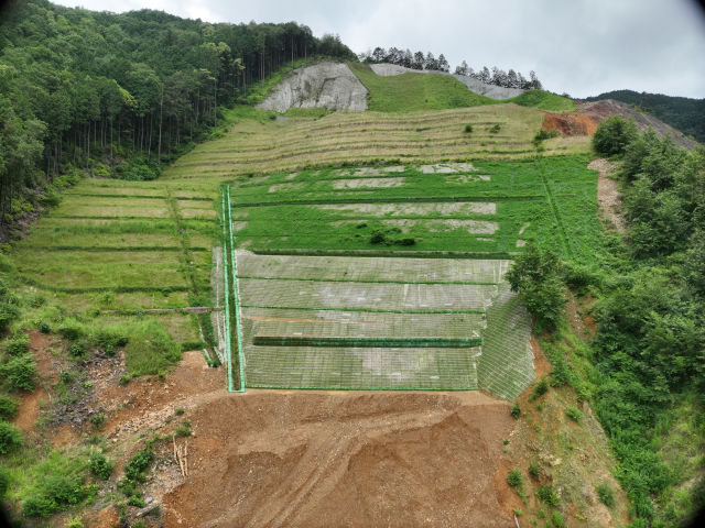 本工事により、古屋地区の斜面は強固に整備され、豪雨時の土砂災害リスクが大幅に軽減されました。
