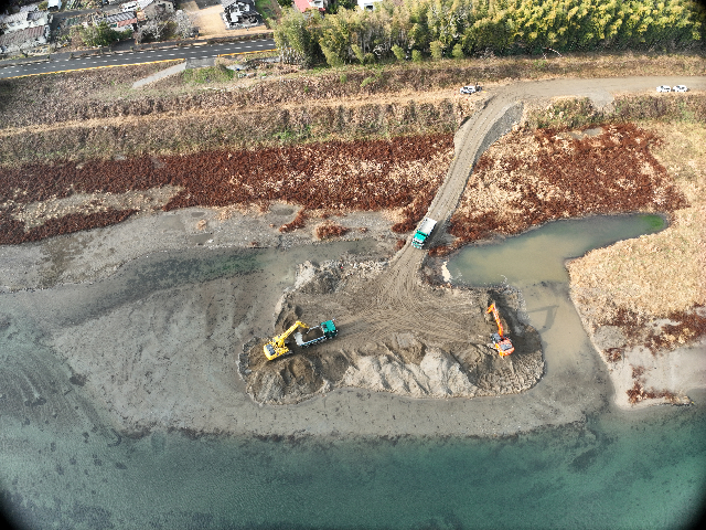 掘削総量8,000m³(砂質土砂)に及ぶ大規模河川掘削を実施。うち7,000m³においてICT施工を採用し、3次元設計データに基づく高精度な施工管理を実現しました。